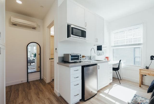 Located in the heart of Oakland, just steps from Lake Merritt, fall in love at ArtHaus Grand! Our mix of furnished and unfurnished suites boasts private kitchenettes with quartz countertops, ample built-in storage, luxury vinyl flooring, and large windows with great views and abundant natural lighting.