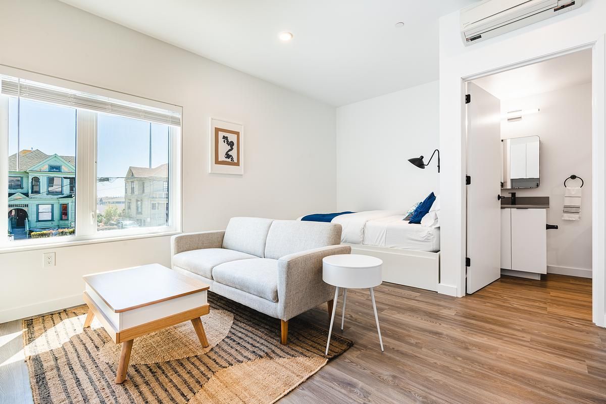 Located in Oakland's East Peralta Neighbood steps from Laney College, get a lot in history and culture at ArtHaus Six! Our mix of furnished and unfurnished suites boasts private kitchenettes with quartz countertops, ample built-in storage, luxury vinyl flooring, and large windows with great views and abundant natural lighting.