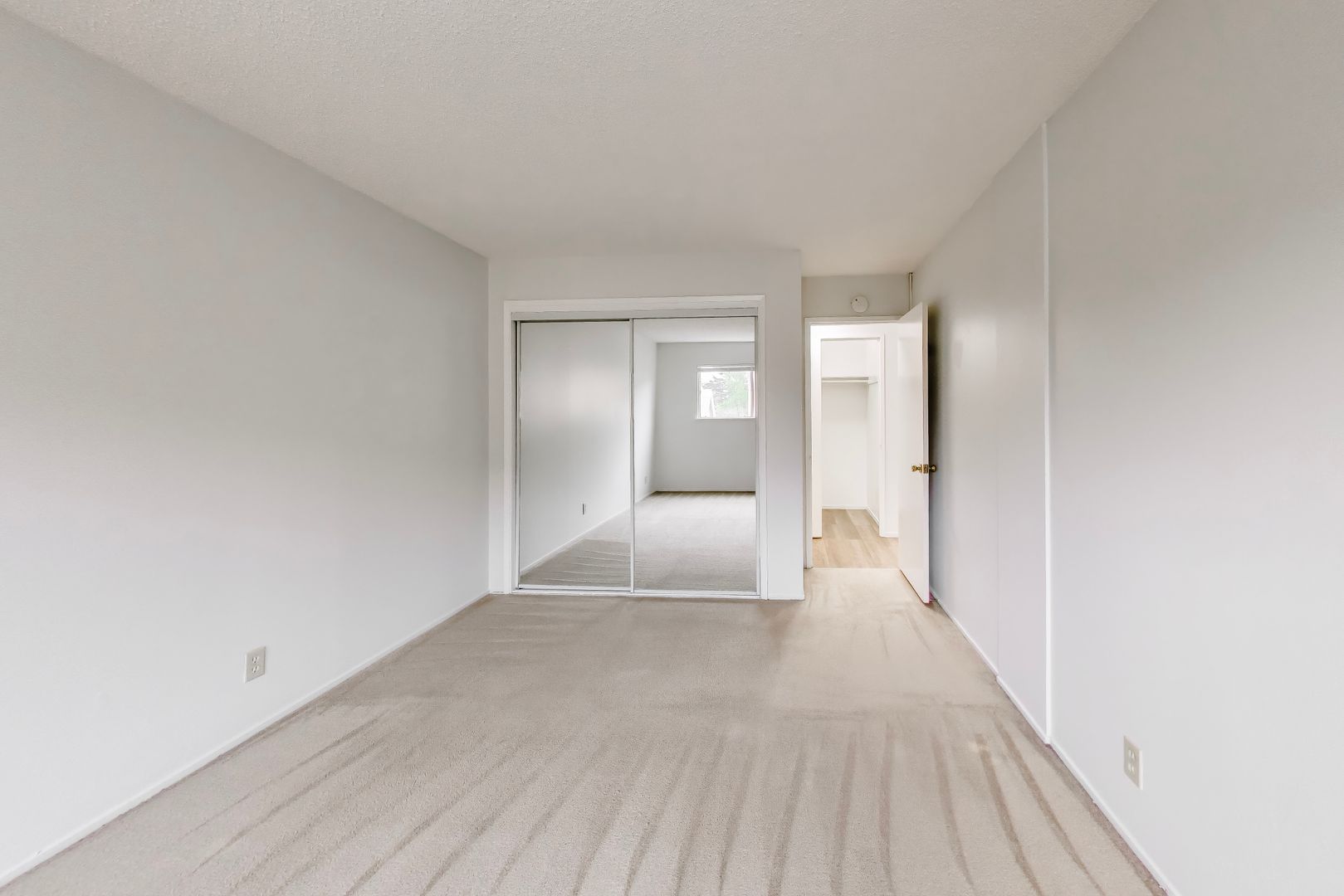 * Comfortable Bedroom: Retreat to a spacious bedroom featuring plush carpeting, a large mirrored closet, and a secondary walk-in closet for extra storage.