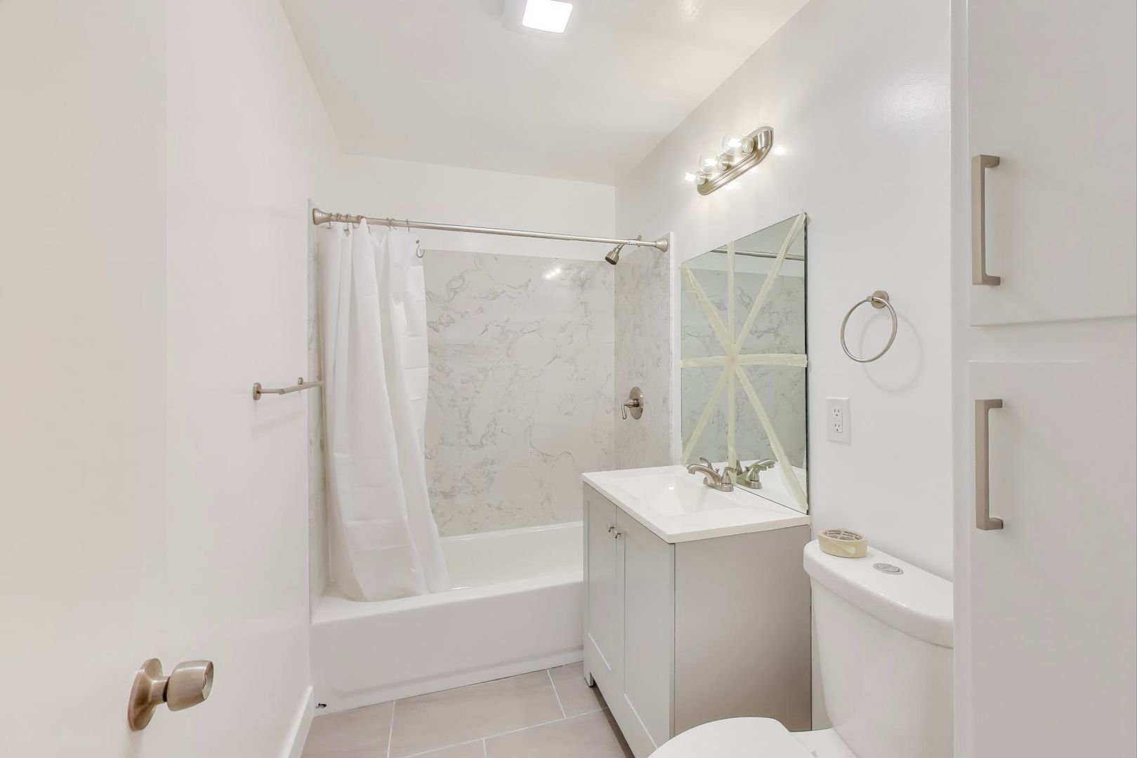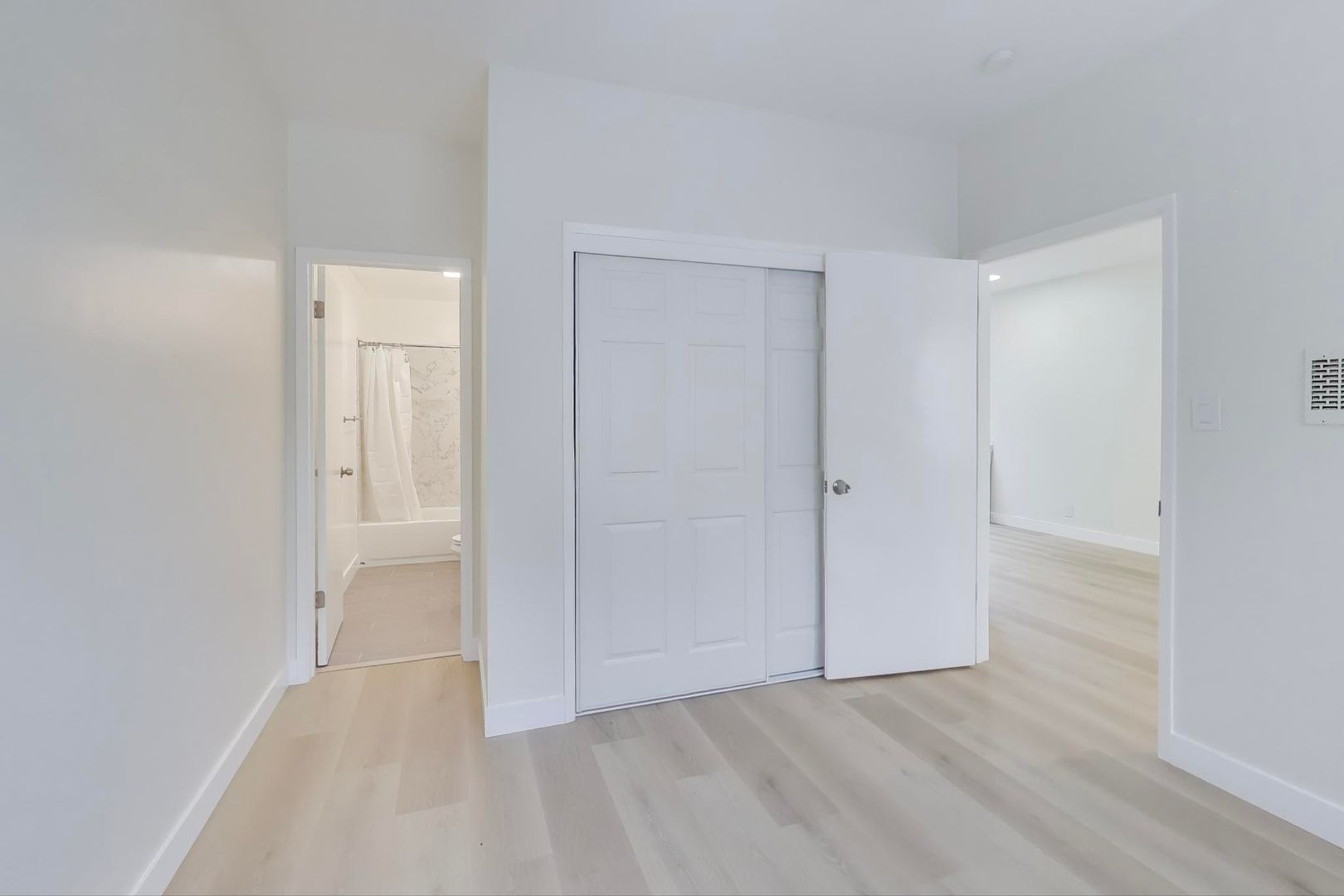 Comfortable bedroom and stylish full bathroom