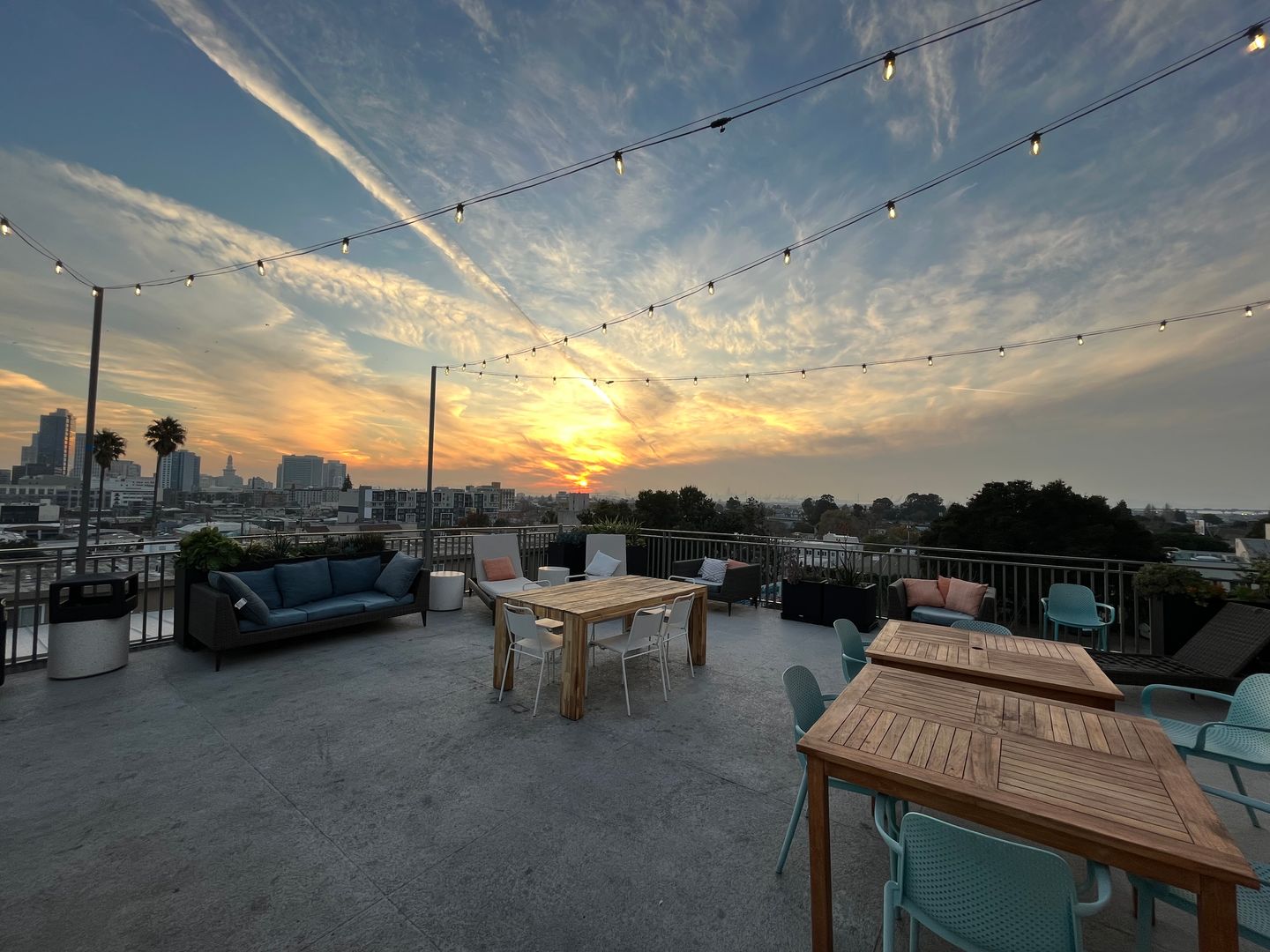 Right outside your door you'll find a gorgeous courtyard with comfortable seating for lounging or dining, and a fire pit for breezy Oakland nights. Head upstairs to the rooftop deck to catch the views of Downtown and the surrounding hills. The space is complete with BBQ grills, couches, and lounge chairs.