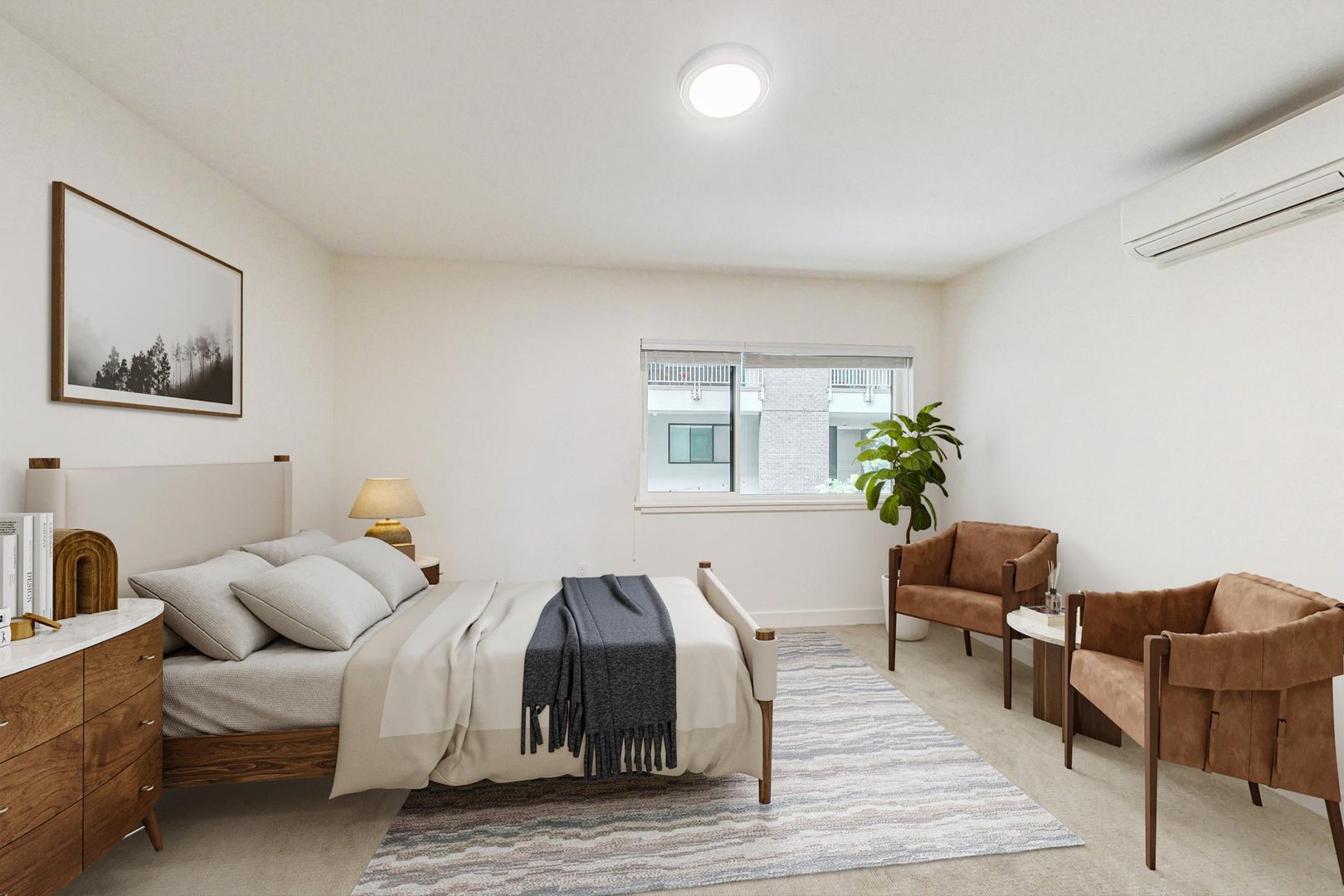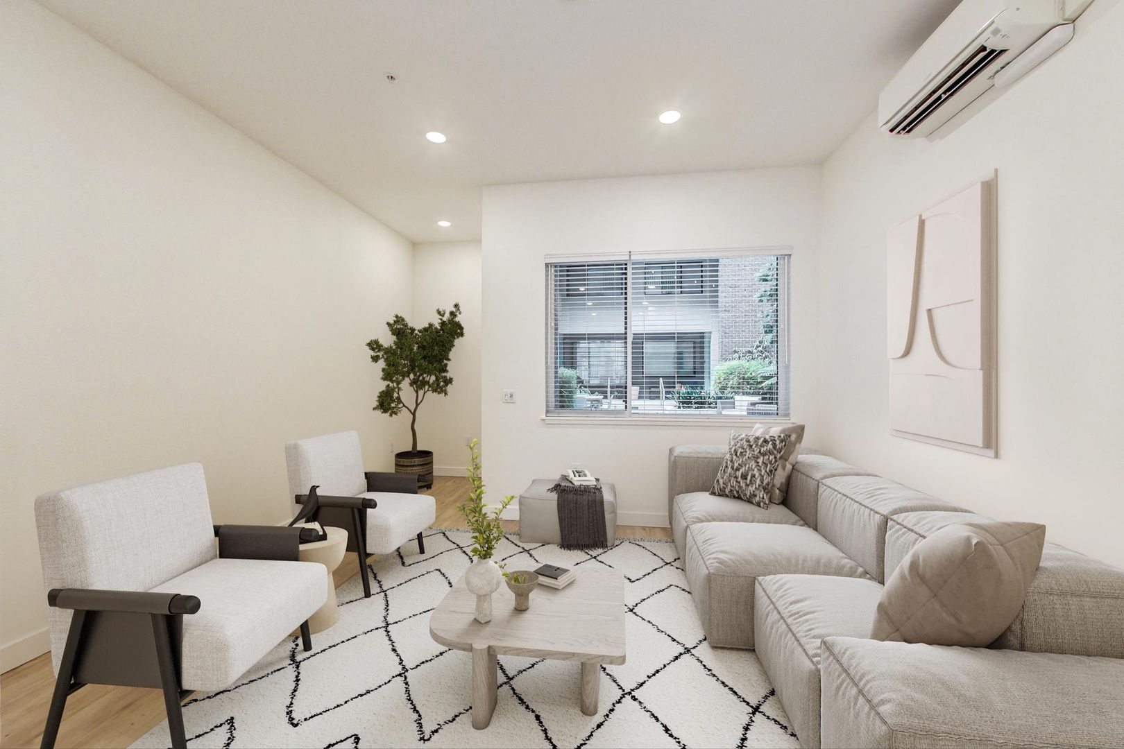 Two level luxury living with AC and laundry in unit. Beautiful roof deck with views!