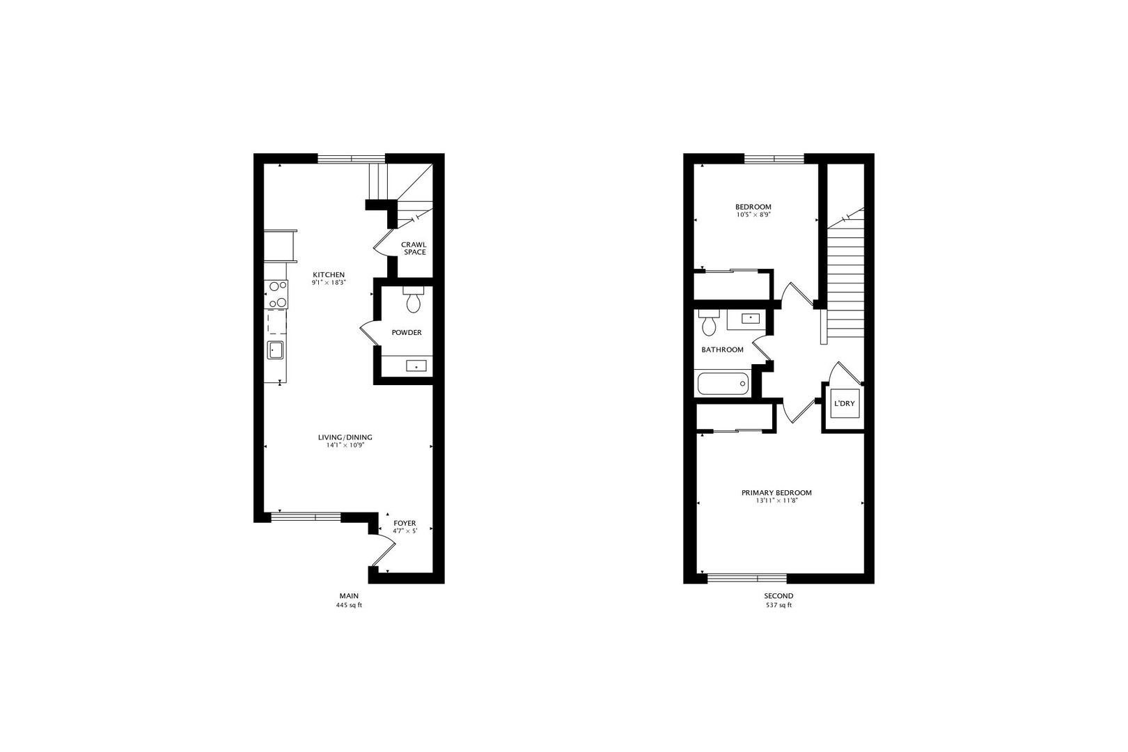 Your modern two bedroom, one and half bathroom apartment features two levels with living area on the ground floor and bedrooms upstairs. Full compliment of appliances including washer and dryer and central air conditioning for your convenience.