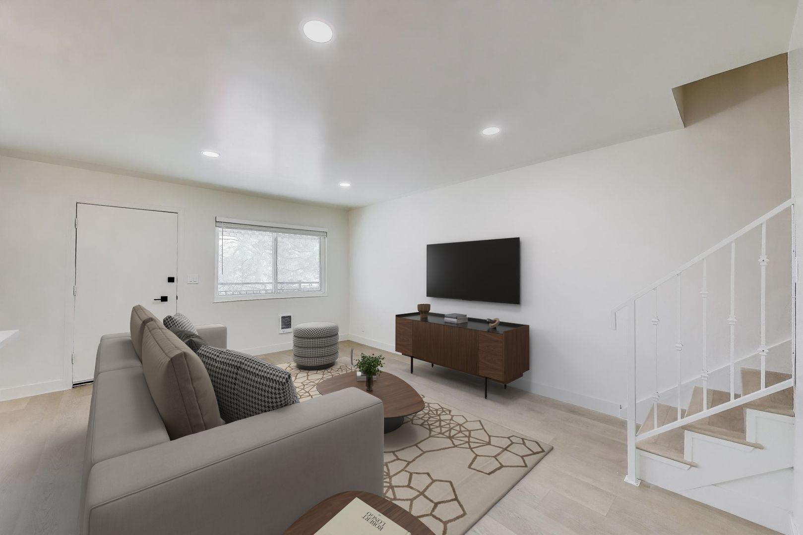 Step inside to discover a bright, open living space featuring luxury flooring, fresh designer paint, and abundant natural light. The fully renovated kitchen boasts quartz countertops, custom cabinetry, stainless steel appliances, and sleek modern fixtures.