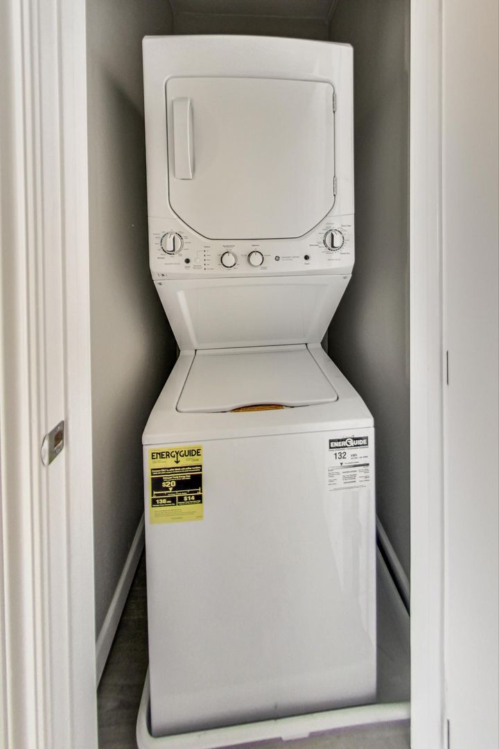In-unit stacked full-size washer/dryer (shared with one other suite)